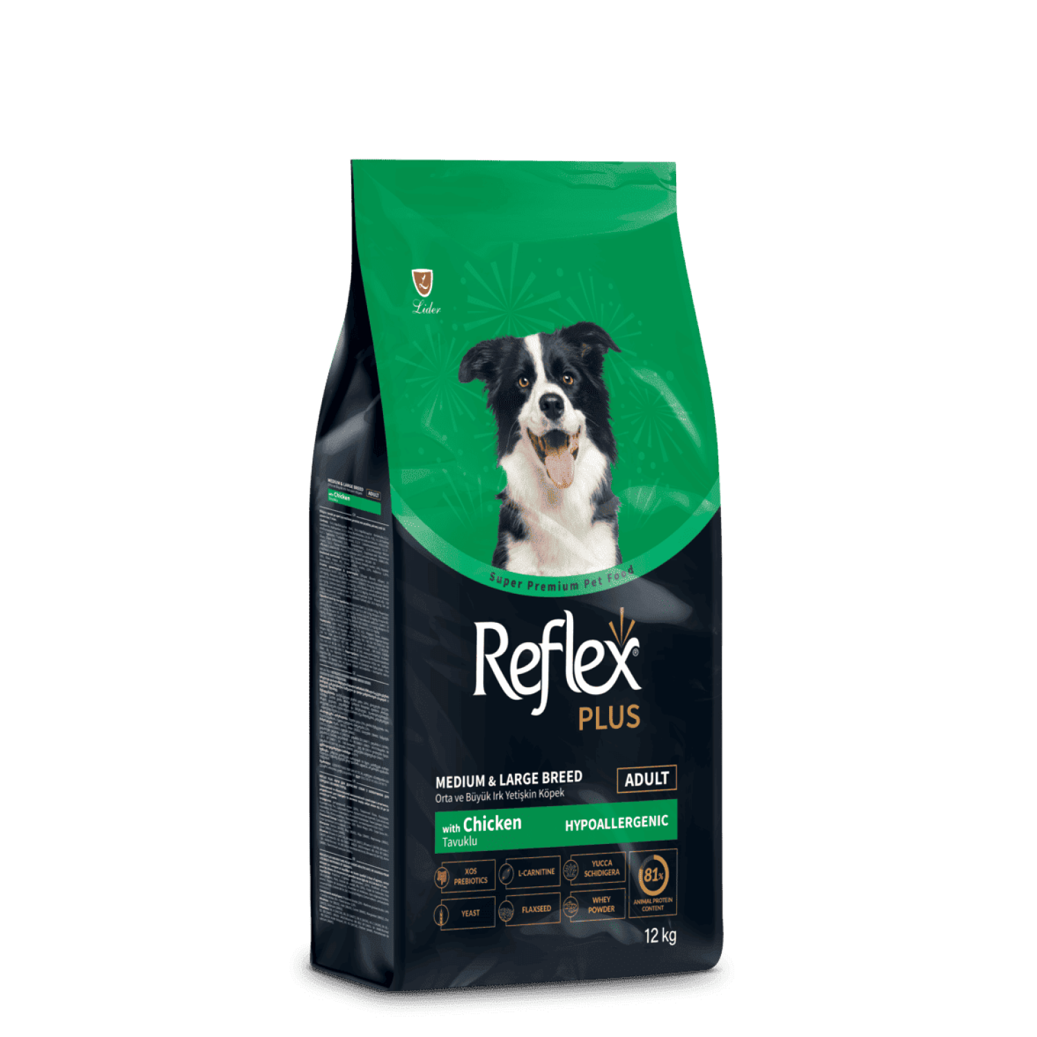 Reflex Plus з куркою для середніх та великих порід – це повноцінний і збалансований сухий корм супер преміум класу, створений для дорослих собак середніх та великих порід віком від 18–24 місяців до 7 років. Раціон на основі високоякісного м’яса курки забезпечує організм собаки легко засвоюваним білком, необхідним для підтримки м’язової маси, енергії та загального тонусу. До складу входять вітаміни, мінерали, пребіотики, жирні кислоти та натуральні антиоксиданти, які сприяють зміцненню імунітету, здоров’ю шкіри та шерсті, підтримці суглобів і нормальному травленню.